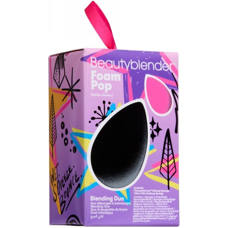 Beautyblender „Foam Pop Blending Duo“ dviejų dalių makiažo kempinėlių rinkinys sukurtas tiksliam ir tolygiam makiažo priemonių padengimui – jame rasite įprasto dydžio Beautyblender® kempinėlę ir itin tiksliam zonų padengimui skirtą Micro Mini Beautyblender®. Abi kempinėlės pagamintos iš originalios, apdovanojimais įvertintos medžiagos, kuri drėgna tampa ypač elastinga ir padeda išgauti vientisą, natūraliai atrodančią makiažo tekstūrą.