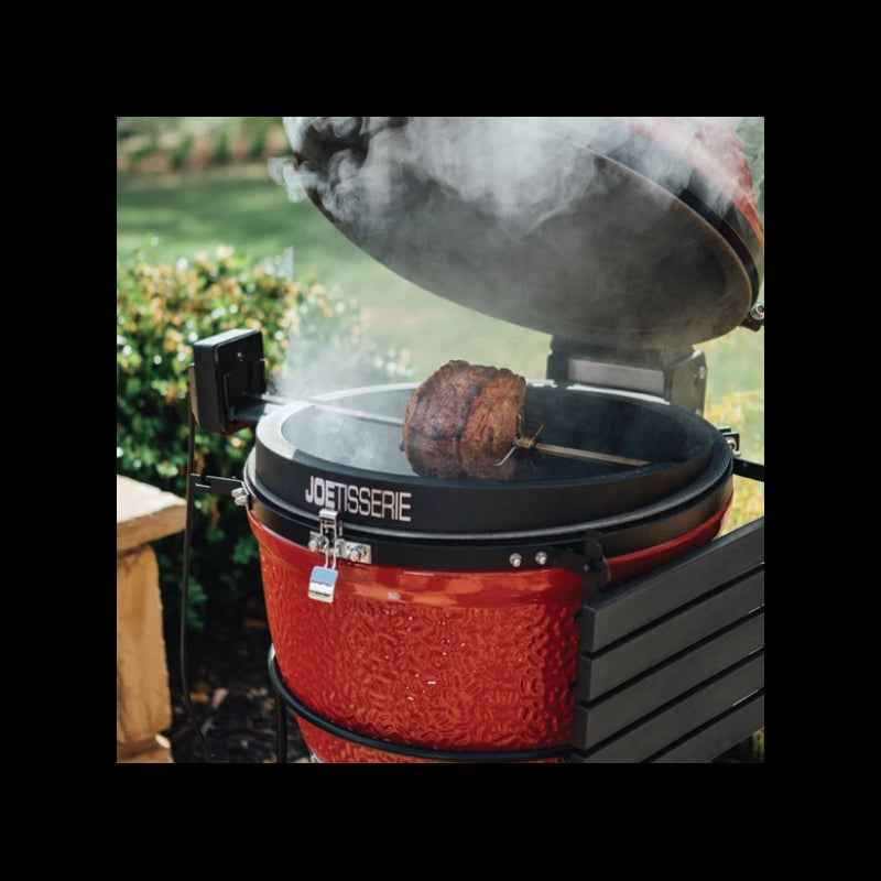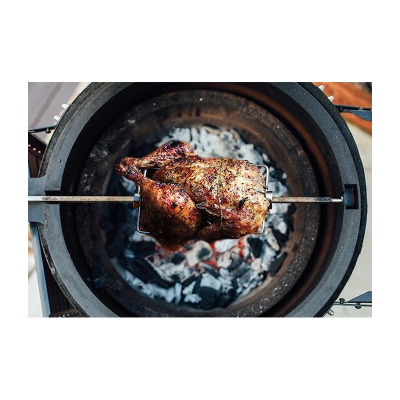 Электрический вращающийся вертел Kamado Joe Classic идеально подходит для запекания птицы, стейков и овощей. Вертел рассчитан на вращение до 23 килограммов мяса благодаря мощному, но бесшумному двигателю 120 В. Чрезвычайно прочная и надежная стальная конструкция в сочетании с вилками регулировки скорости из нержавеющей стали марки 304 обеспечивает превосходный баланс и равномерное вращение. Уникальное алюминиевое кольцо толще спереди и тоньше сзади гриля, что позволяет легко закрывать крышку камадо. Комплект для гриля прост в установке. Для облегчения очистки его можно мыть в посудомоечной машине.