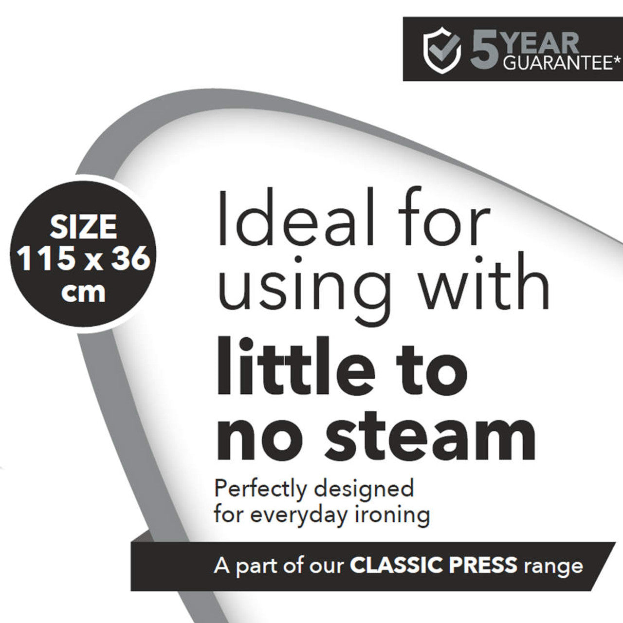 Ši „Beldray“ lyginimo lenta yra tvirta ir praktiška, jos matmenys – 115 x 36 cm, todėl ji idealiai tinka reguliariam naudojimui.