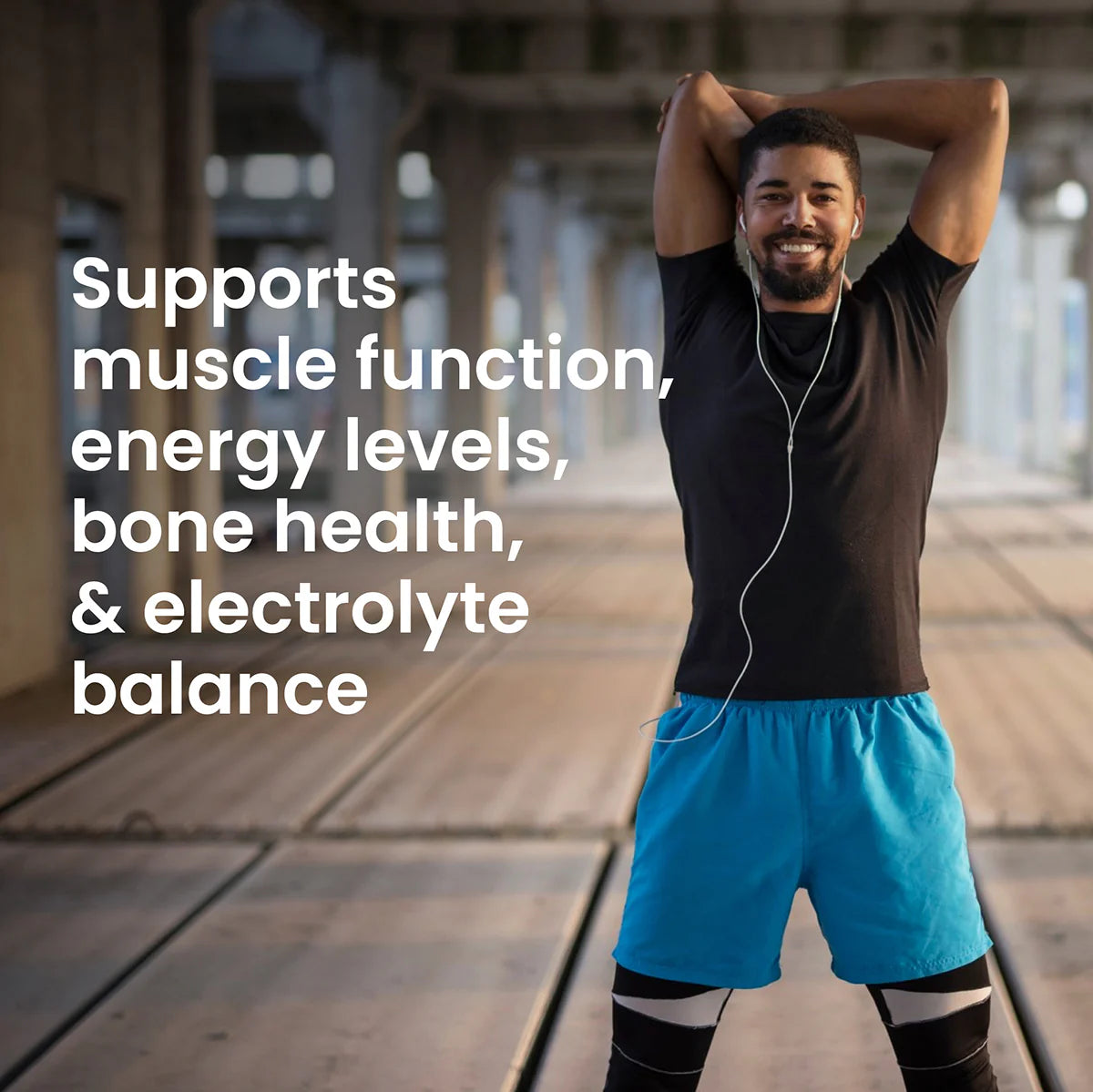 Kiekvienoje dienos porcijoje – net 402 mg gryno elementinio magnio, kuris būtinas energijos lygiui palaikyti, raumenų funkcijai užtikrinti, kaulų sveikatai bei elektrolitų balansui palaikyti. Tai ypač svarbu aktyvų gyvenimo būdą mėgstantiems žmonėms.