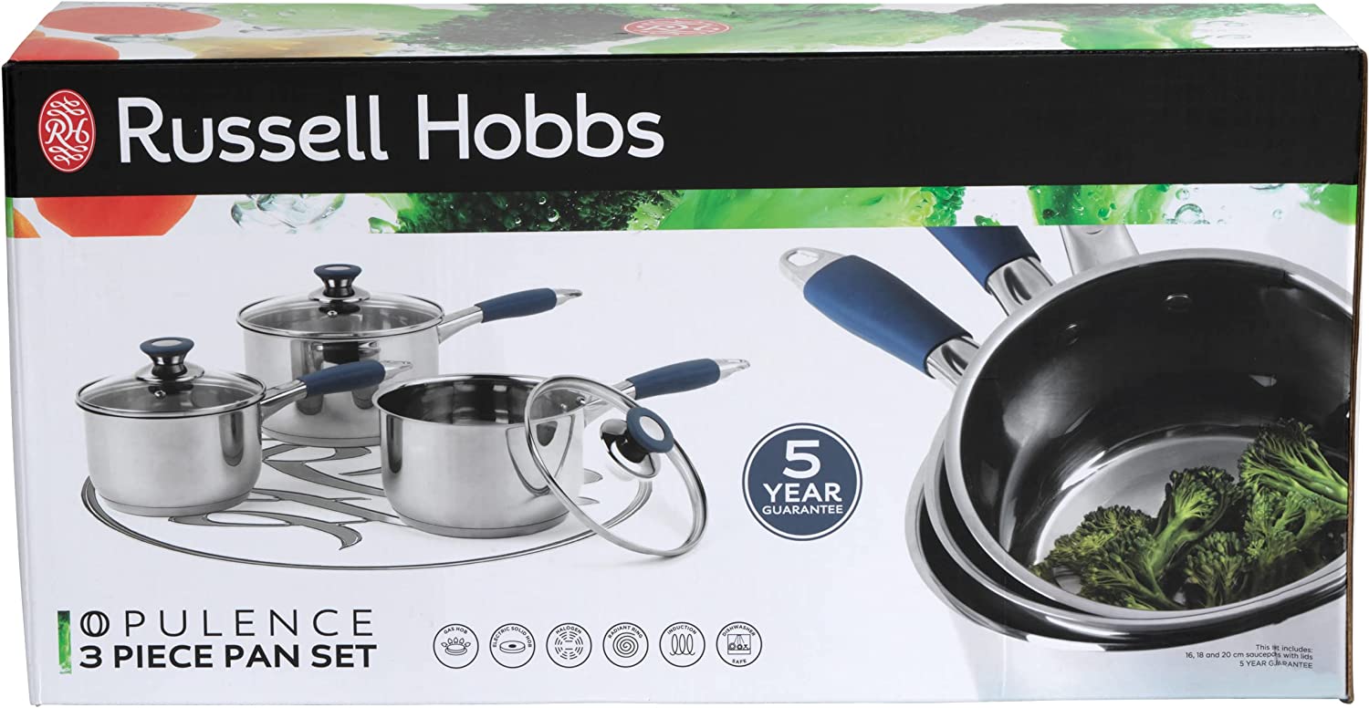 Russell Hobbs RH01178EU Opulence Набор из 3 кастрюль с темно-синими ручками