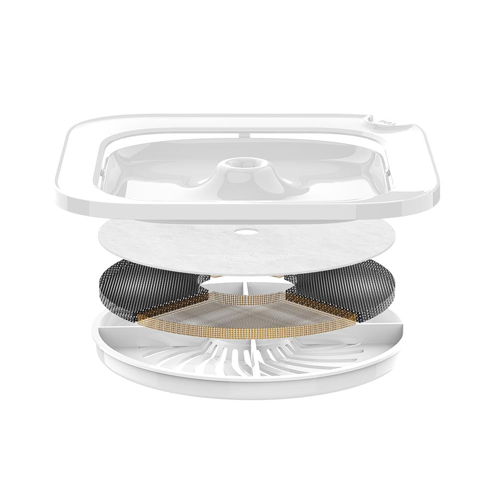 Благодаря уникальной конструкции вода насыщается кислородом, очищается от механических примесей (пыль, волосы) и смягчается. Таким образом, питомцы с удовольствием утоляют жажду всегда свежей водой.