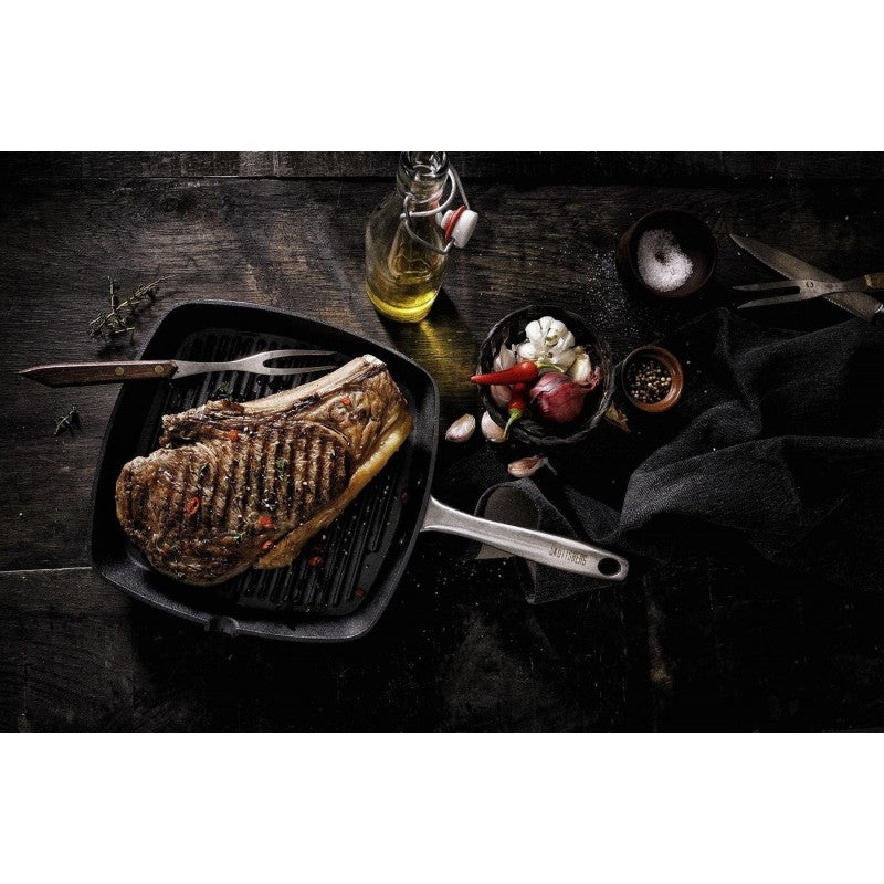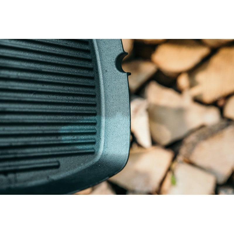 Ši grilio keptuvė buvo apdorota termiškai, todėl yra atspari rūdims ir įbrėžimams. Keptuvė gali išlaikyti aukštą temperatūrą ir puikiai tinka kepti žuvį, mėsą, daržoves ar gaminti puikius skrebučius. Ši keptuvė yra tvirta ir puikiai tinka naudoti ant bet kokio šilumos šaltinio. Keptuvę galima kaitinti indukciniu režimu, atvira ugnimi ar naudoti orkaitėje (iki 250 ℃).