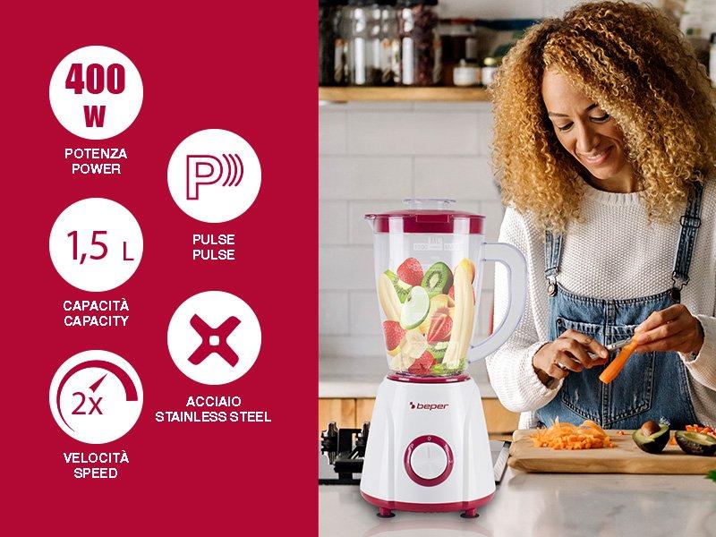 | Specialios pastabos | Neslystantis pagrindas stabilumui; dangtelis su skylute, kad būtų lengva įdėti ingredientus; idealiai tinka kokteiliams, sriuboms, padažams ir kremams. |