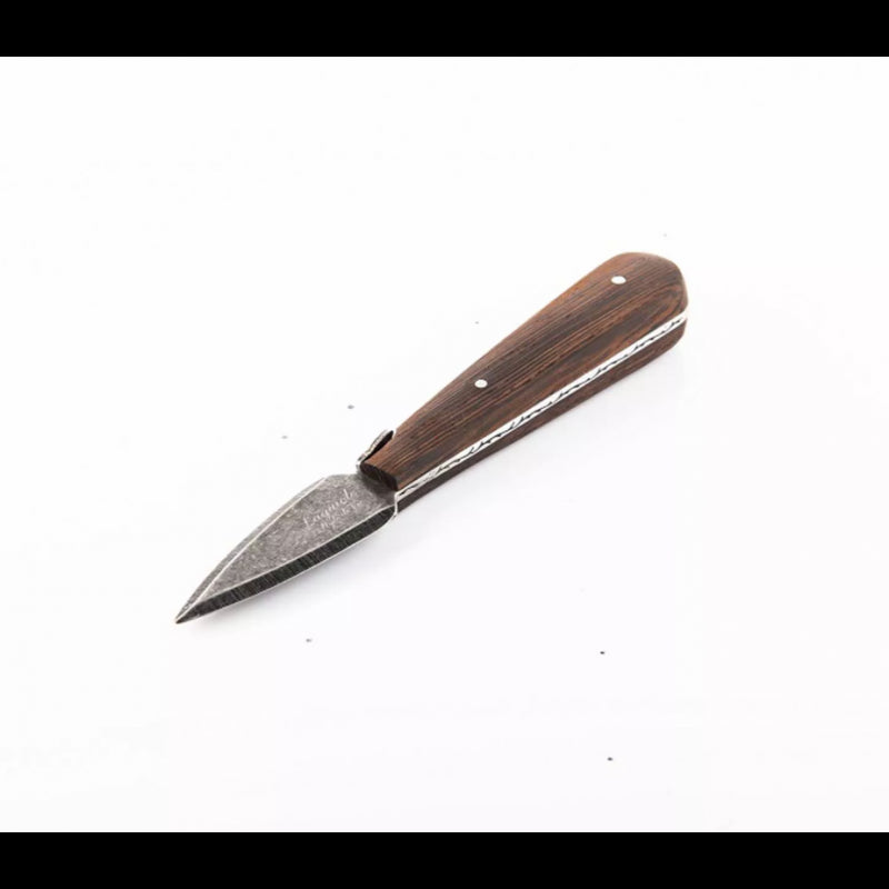 Šis komplektas ypač išsiskiria savo estetika: rankena pagaminta iš tamsios wengé medienos, kuri kartu su juodos spalvos „stonewash“ apdaila ant austrių peilio suteikia solidumo ir charakterio. Peilis turi storą, solidų pjovimo kraštą, o silikoninis laikiklis užtikrina saugumą ir stabilumą atidarant austrių kriaukles. Silikoninį laikiklį galima plauti indaplovėje, peilį reikia plauti rankomis.