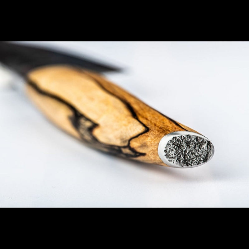 • Rankena – dailiai pagaminta iš natūralaus medžio šaknies („root wood“), pripildyta derva. Kiekviena rankena yra unikali savo spalva ir tekstūra, taipogi yra patogi laikyti.