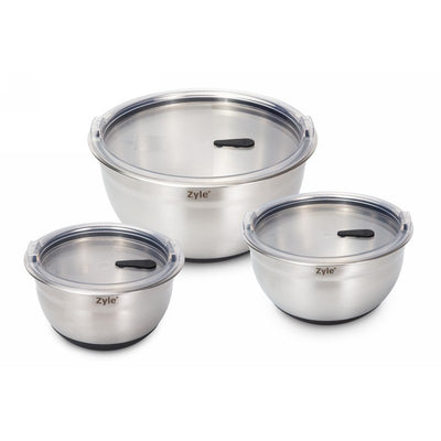 Набор мисок Zyle ZY193SMB, нержавеющая сталь, с крышками, 3 шт.