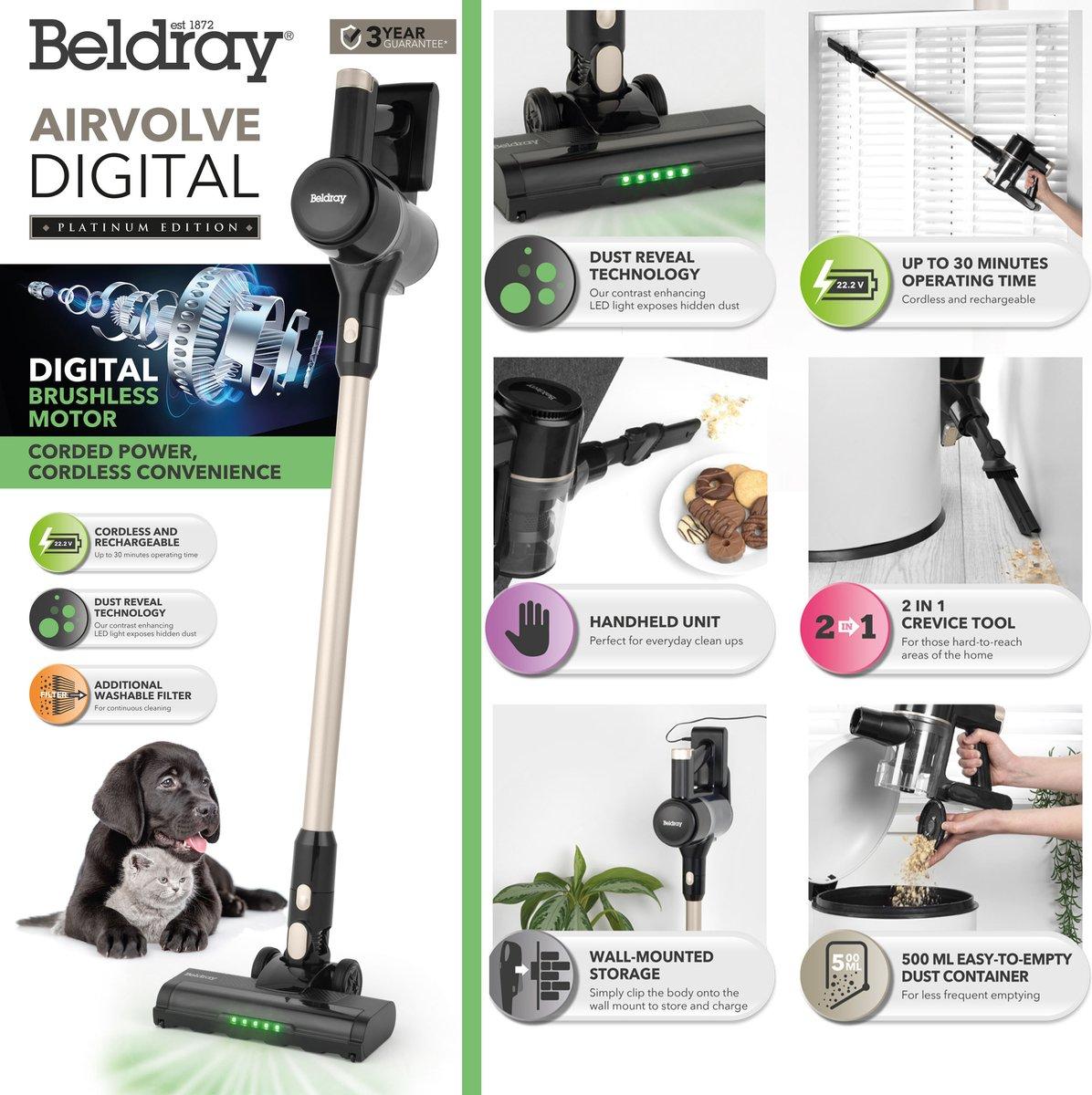 Цифровой бесщеточный двигатель: улучшенная мощность всасывания с аккумулятором 22,2 В и моющимся фильтром.